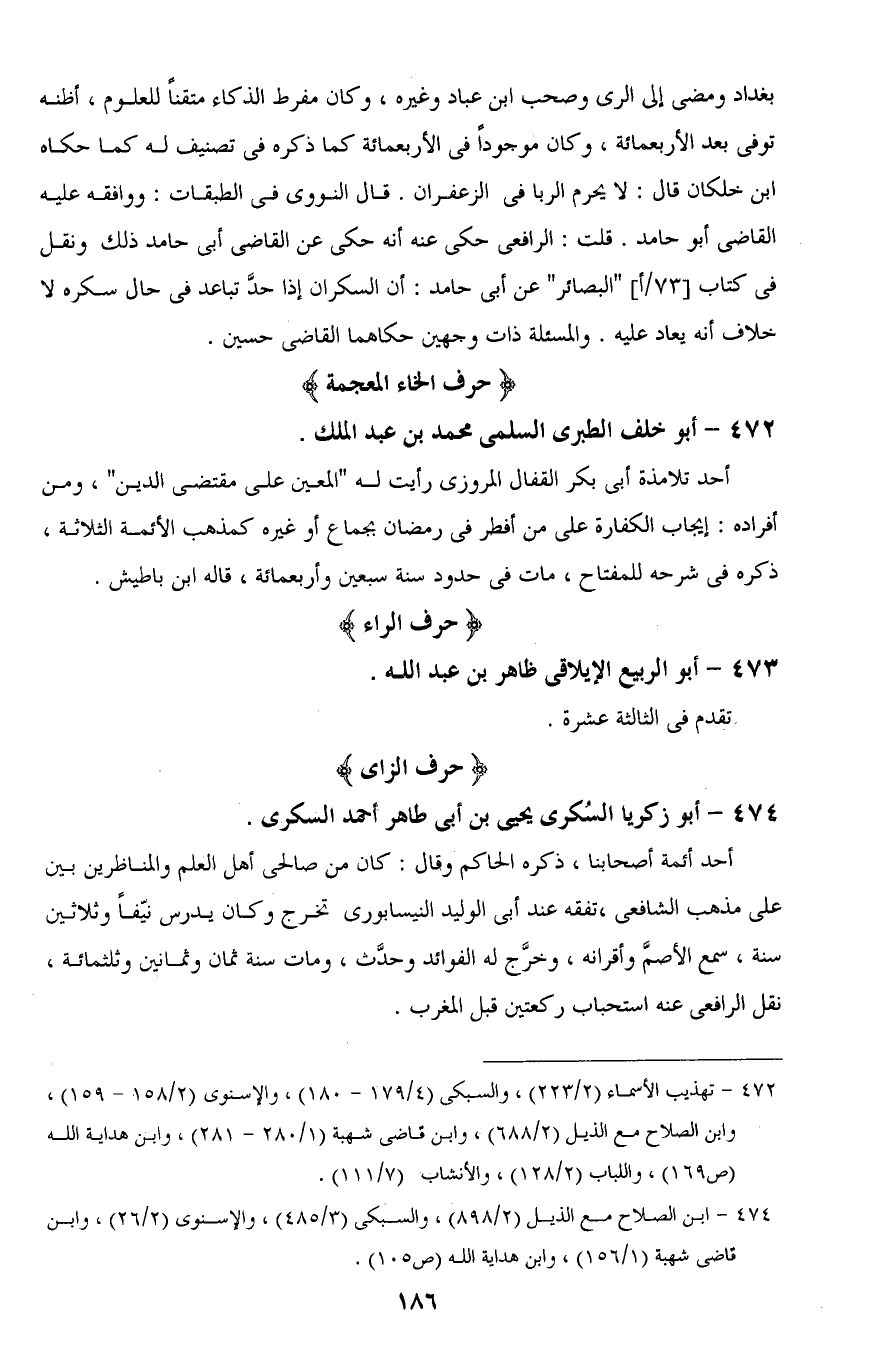474 - ابن الصلاح مع الذيل (2/ 898)، والسبكى (3/ 485)، والإسنوى (2/ 26)، وابن قاضى شهبة (1/ 156)، وابن هداية اللَّه (ص 105).