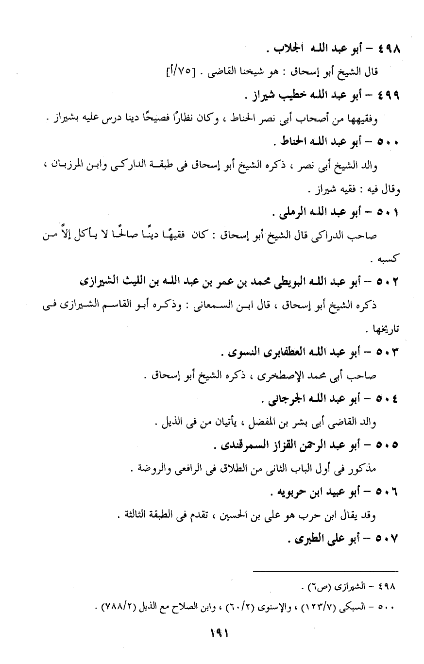 500 - السبكى (7/ 123)، والإسنوى (2/ 60)، وابن الصلاح مع الذيل (2/ 788).