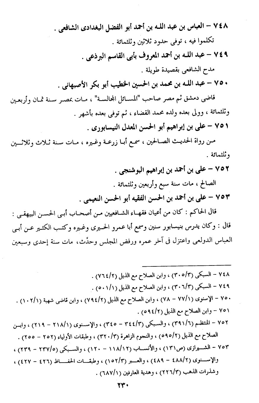 748 - السبكى (3/ 305)، وابن الصلاح مع الذيل (2/ 764).
