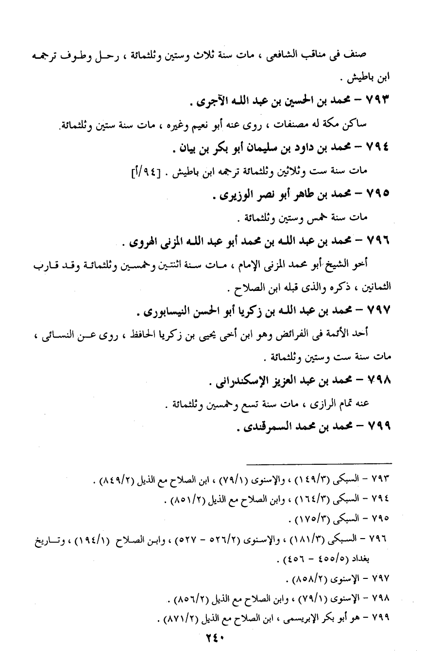 793 - السبكى (3/ 149)، والإسنوى (1/ 79)، ابن الصلاح مع الذيل (2/ 849).