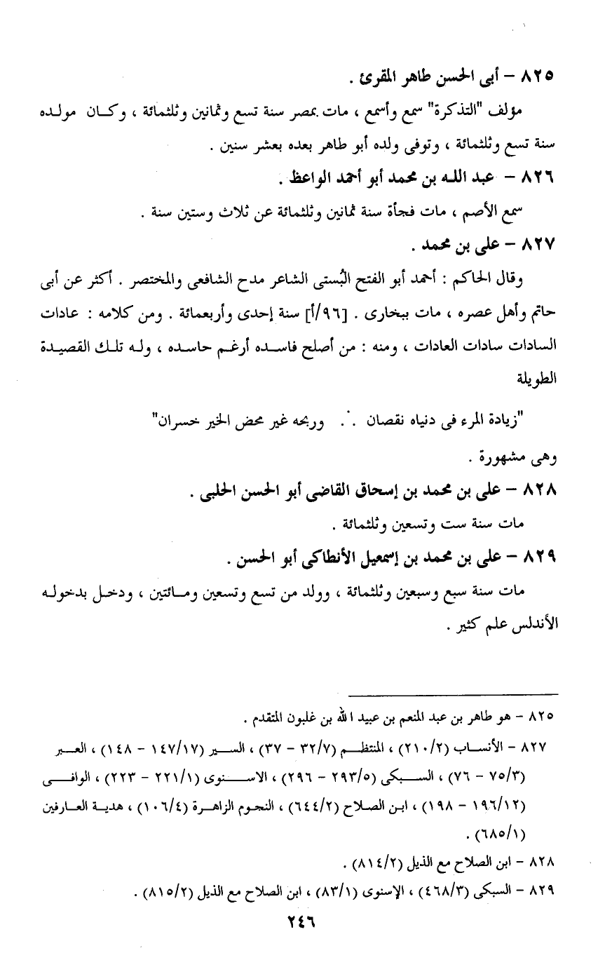 827 - الأنساب (2/ 210)، المنتظم (7/ 32 - 37)، السير (17/ 147 - 148)، العبر (3/ 75 - 76)، السبكى (5/ 293 - 296)، الإسنوى (1/ 221 - 223)، الوافى (12/ 196 - 198)، ابن الصلاح (2/ 644)، النجوم الزاهرة (4/ 106)، هدية العارفين (1/ 685).
