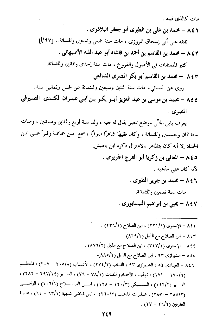 841 - الإسنوى (1/ 221)، ابن الصلاح (1/ 236).