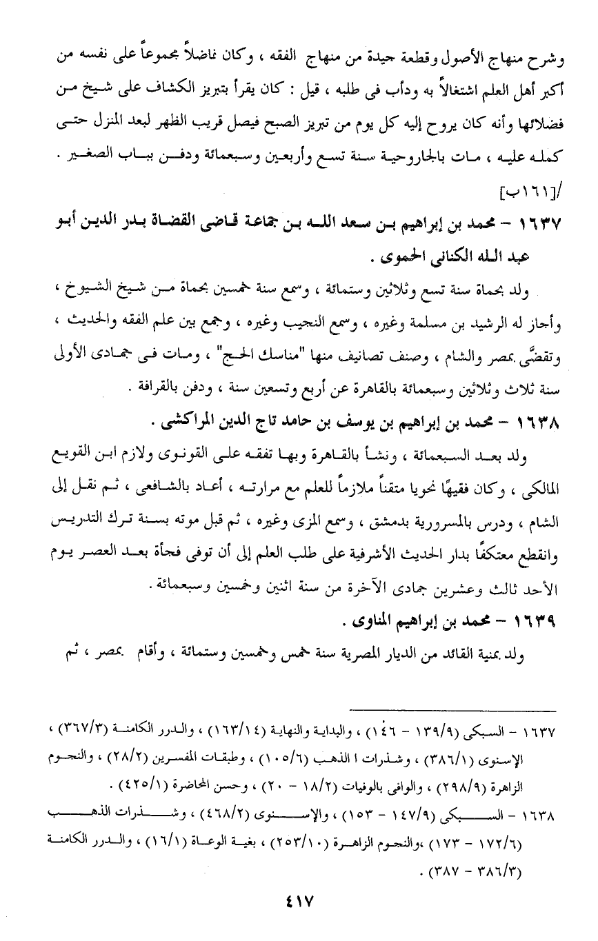 1637 - محمد بن إبراهيم بن سعد اللَّه بن جماعة قاضى القضاة بدر الدين أبو عبد اللَّه الكنانى الحموى.