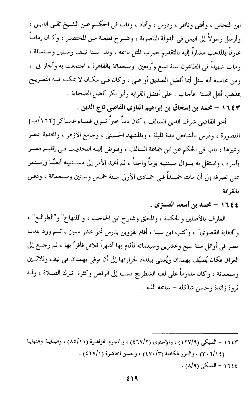 1643 - السبكى (9/ 127)، والإسنوى (2/ 467)، والنجوم الزاهرة (11/ 85)، والبداية والنهاية (14/ 306)، والدرر الكامنة (3/ 470)، وحسن المحاضرة (1/ 427).