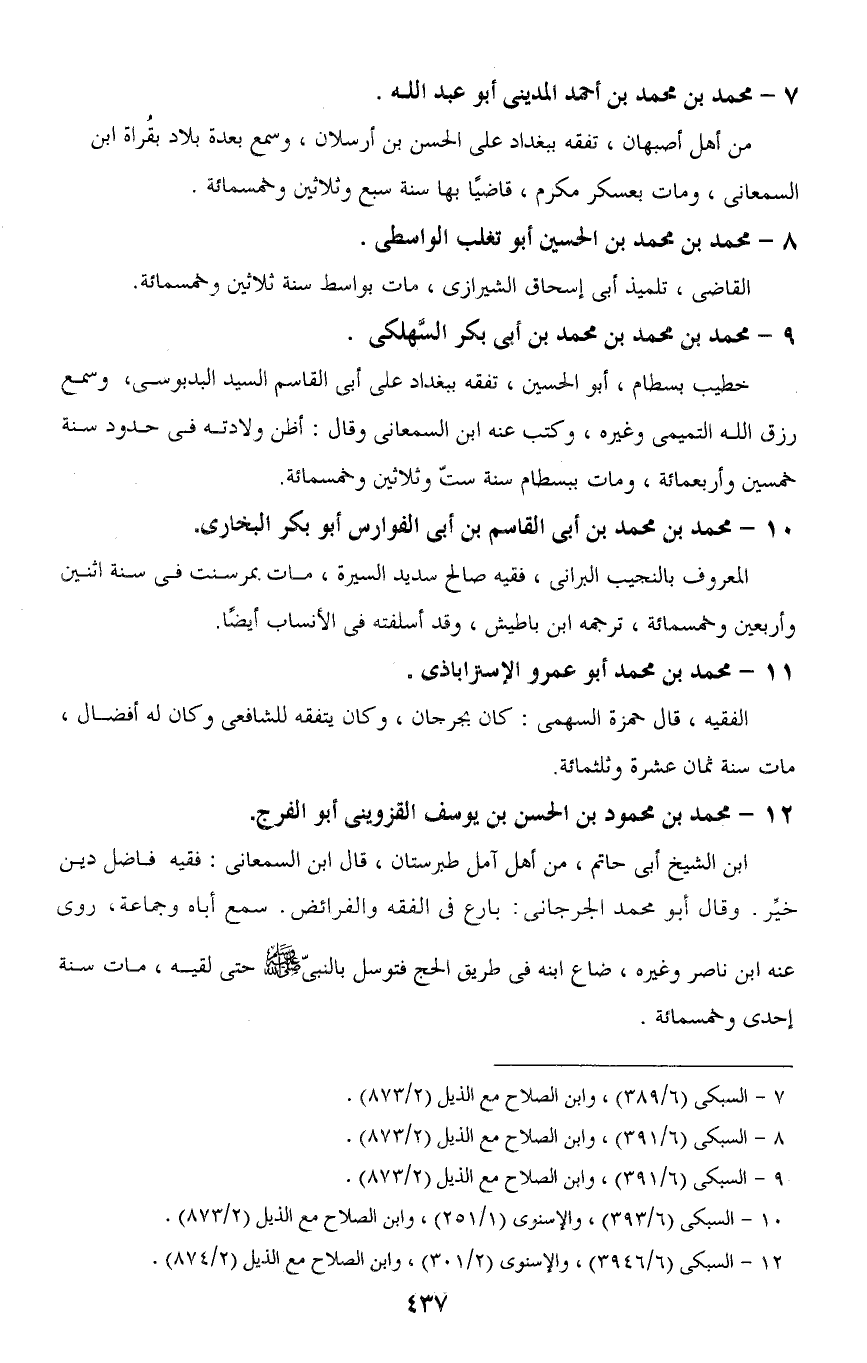 7 - السبكى (6/ 389)، وابن الصلاح مع الذيل (2/ 873).
