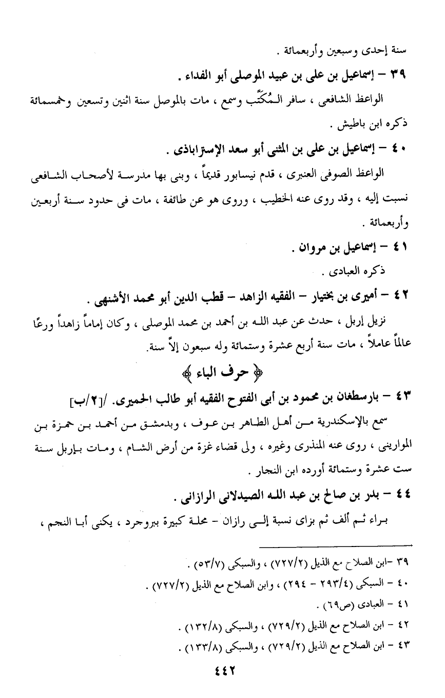 42 - ابن الصلاح مع الذيل (2/ 729)، والسبكى (8/ 132).