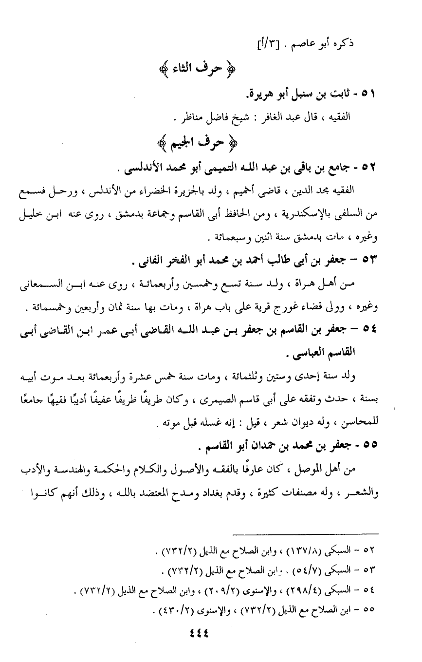 54 - السبكى (4/ 298)، والإسنوى (9/ 202)، وابن الصلاح مع الذيل (2/ 732).