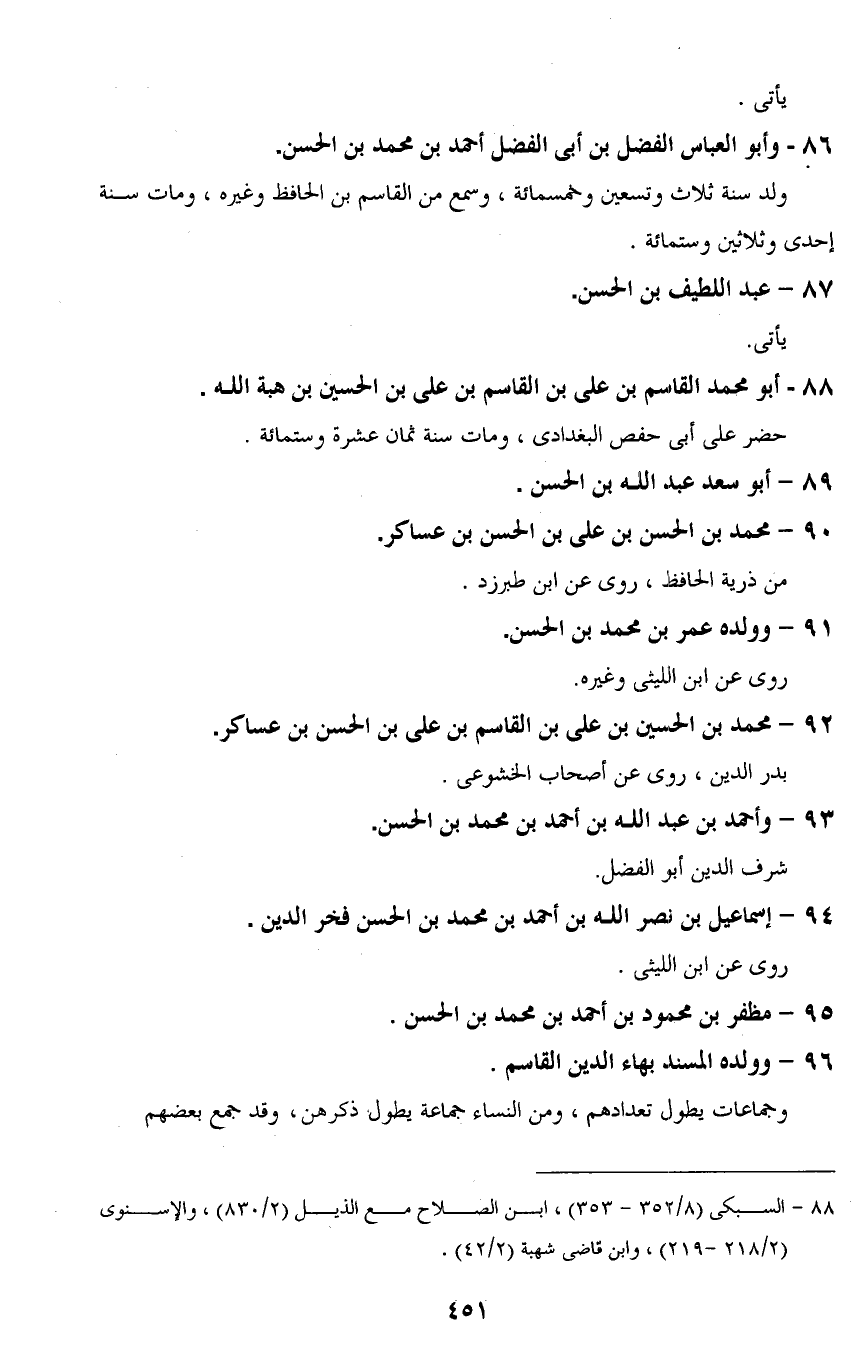 88 - السبكى (8/ 351 - 353)، ابن الصلاح مع الذيل (2/ 830)، والإسنوى (2/ 218 - 219)، وابن قاضى شهبة (2/ 42).