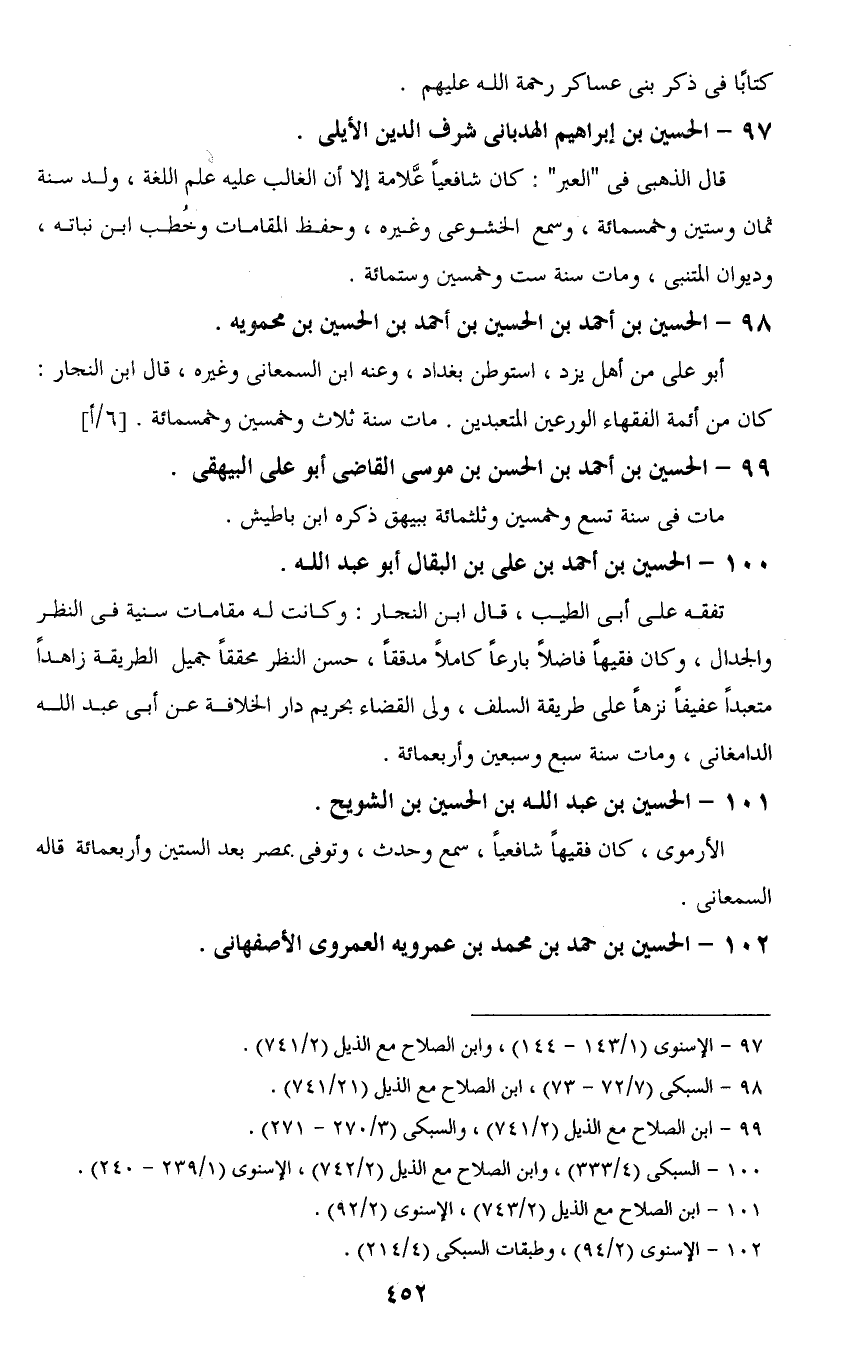 102 - الإسنوى (2/ 94)، وطبقات السبكى (4/ 214).