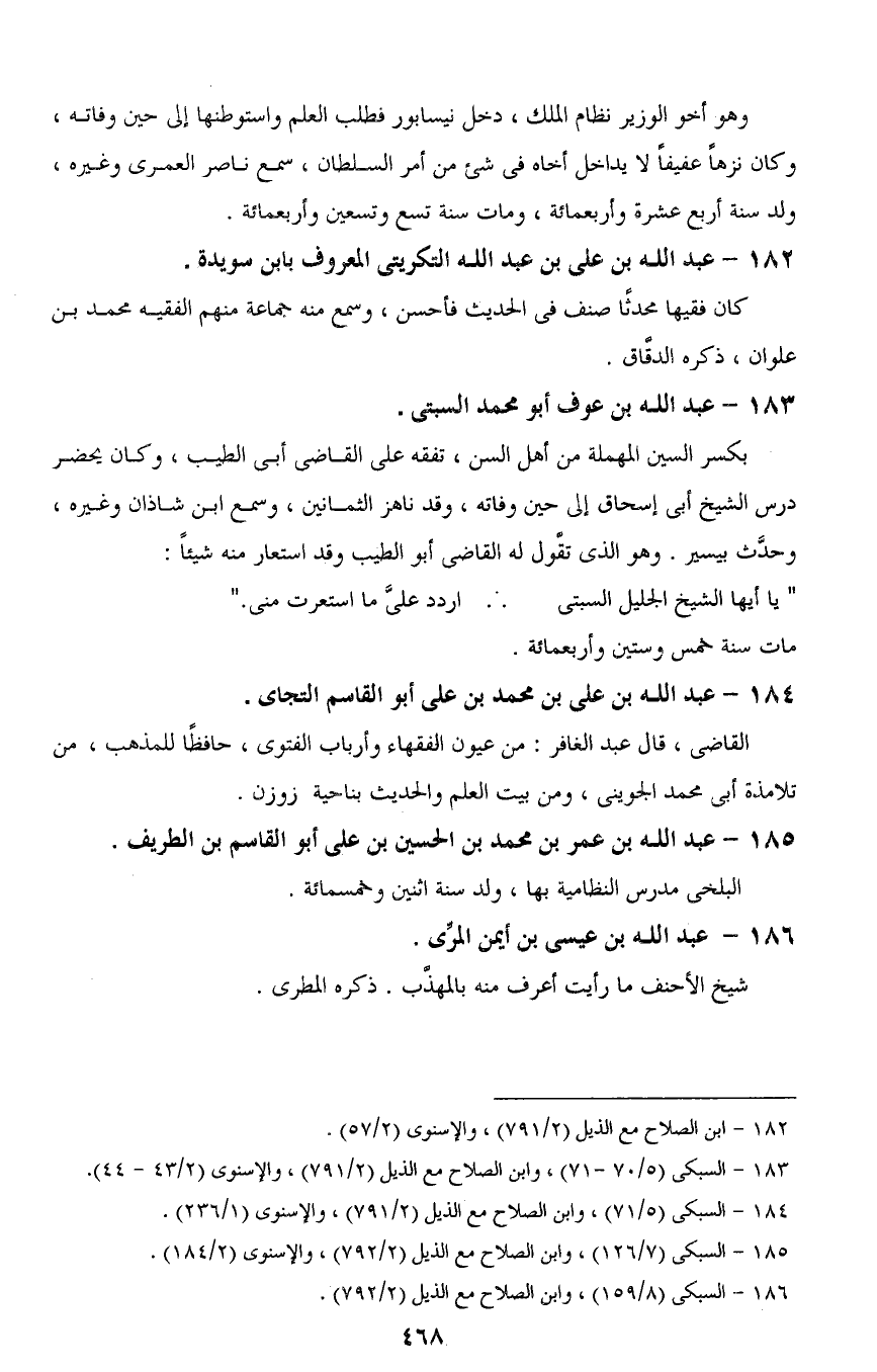 186 - السبكى (8/ 159)، وابن الصلاح مع الذيل (2/ 792).