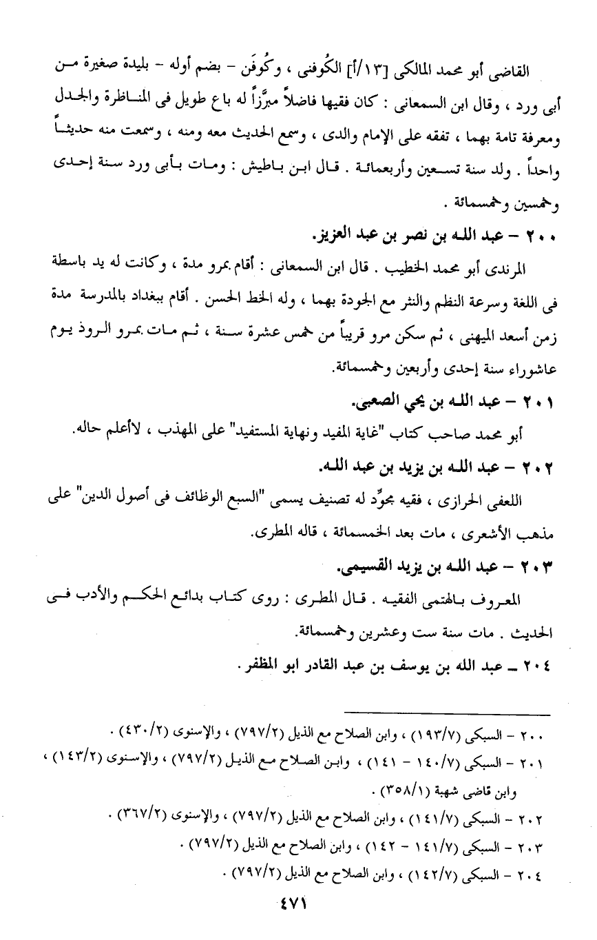 200 - السبكى (7/ 193)، وابن الصلاح مع الذيل (2/ 797)، والإسنوى (2/ 430).