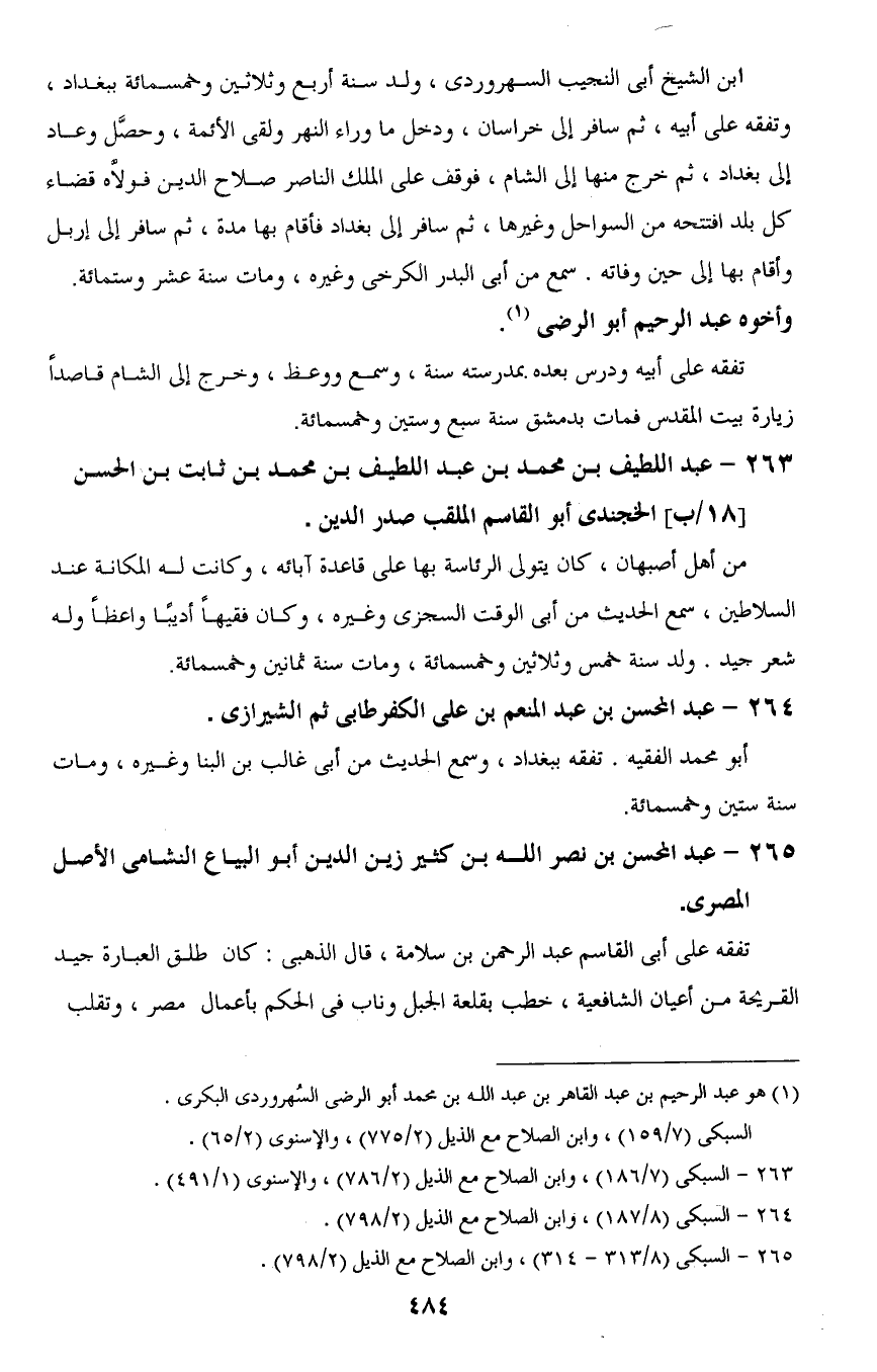 264 - السبكى (8/ 187)، وابن الصلاح مع الذيل (2/ 798).
