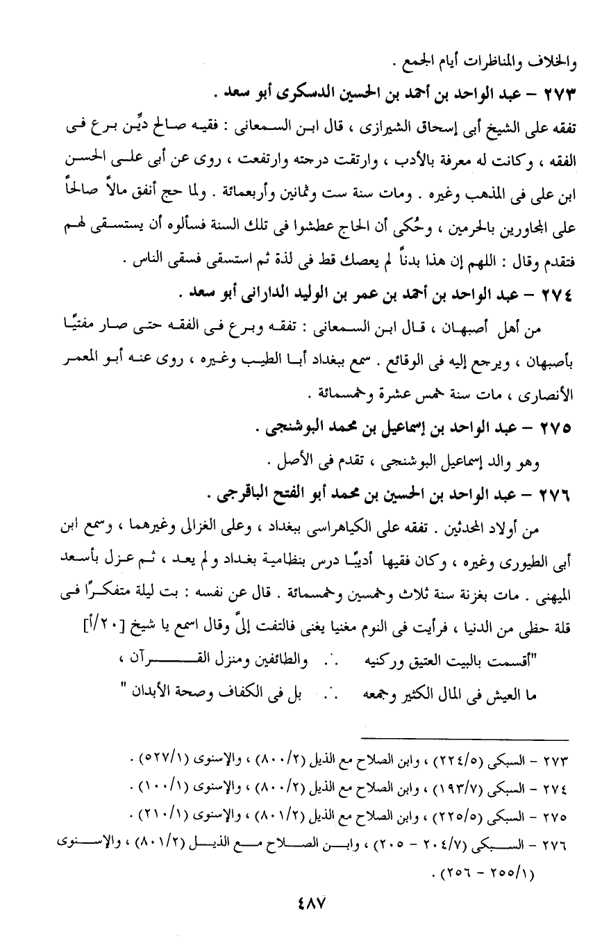 273 - عبد الواحد بن أحمد بن الحسين الدسكرى أبو سعد.