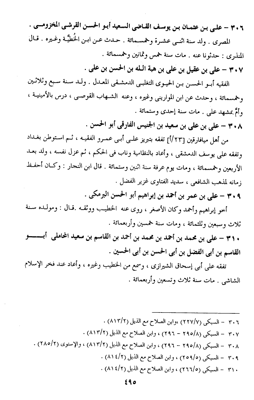 308 - السبكى (8/ 295 - 296)، وابن الصلاح مع الذيل (2/ 813)، والإسنوى (2/ 285).