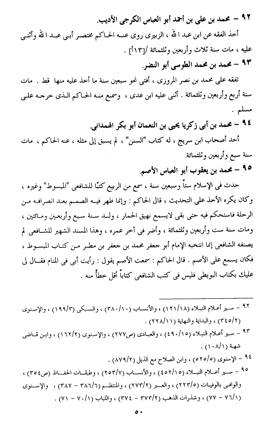 93 - سير أعلام النبلاء (15/ 490)، والعبادى (ص 277)، والإسنوى (2/ 162)، وابن قاضى شهبة (1/ 108).