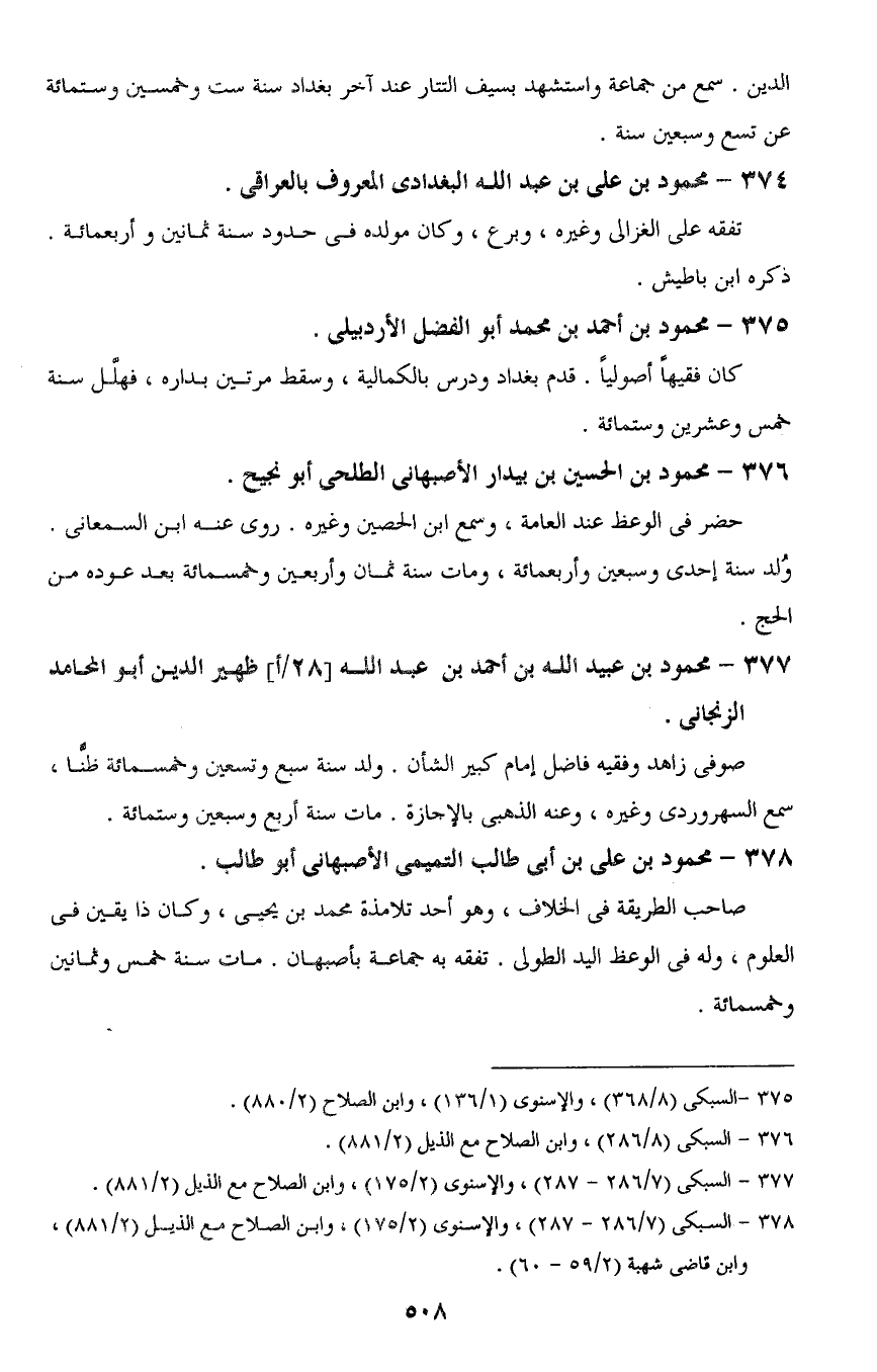 377 - محمود بن عبيد اللَّه بن أحمد بن عبد اللَّه ظهير الدين أبو المحامد الزنجانى.