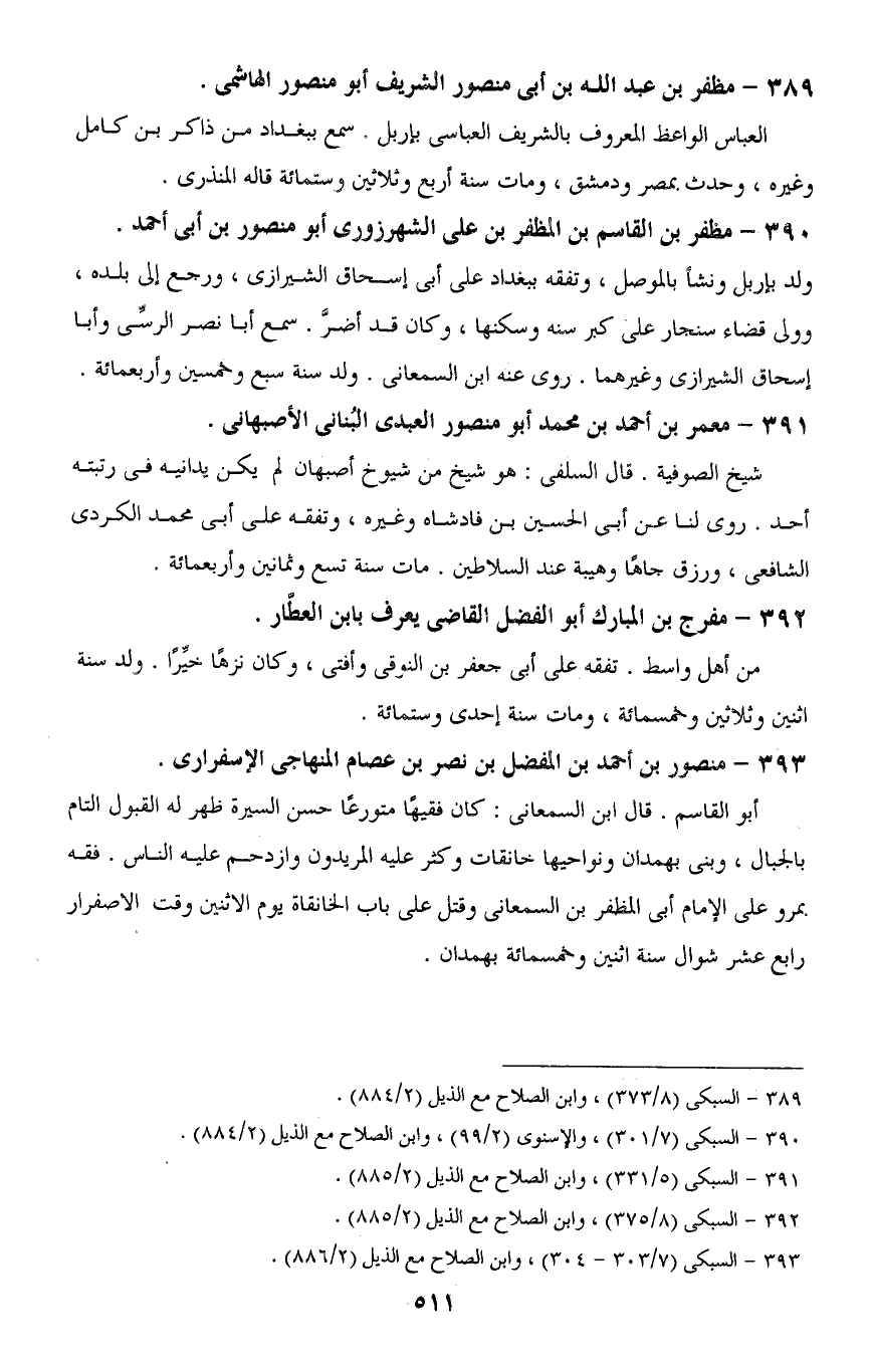 391 - السبكى (5/ 331)، وابن الصلاح مع الذيل (2/ 885).