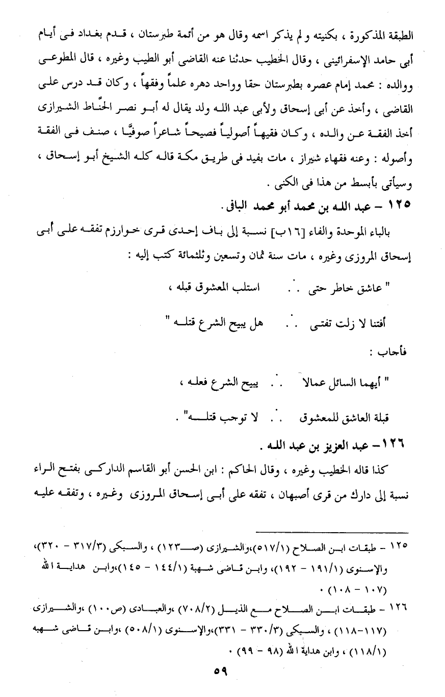 125 - طبقات ابن الصلاح (1/ 517)، والشيرازى (ص 123)، والسبكى (3/ 317 - 320)، والإسنوى (1/ 191 - 192)، وابن قاضى شهبة (1/ 144 - 145)، وابن هداية اللَّه (107 - 108).