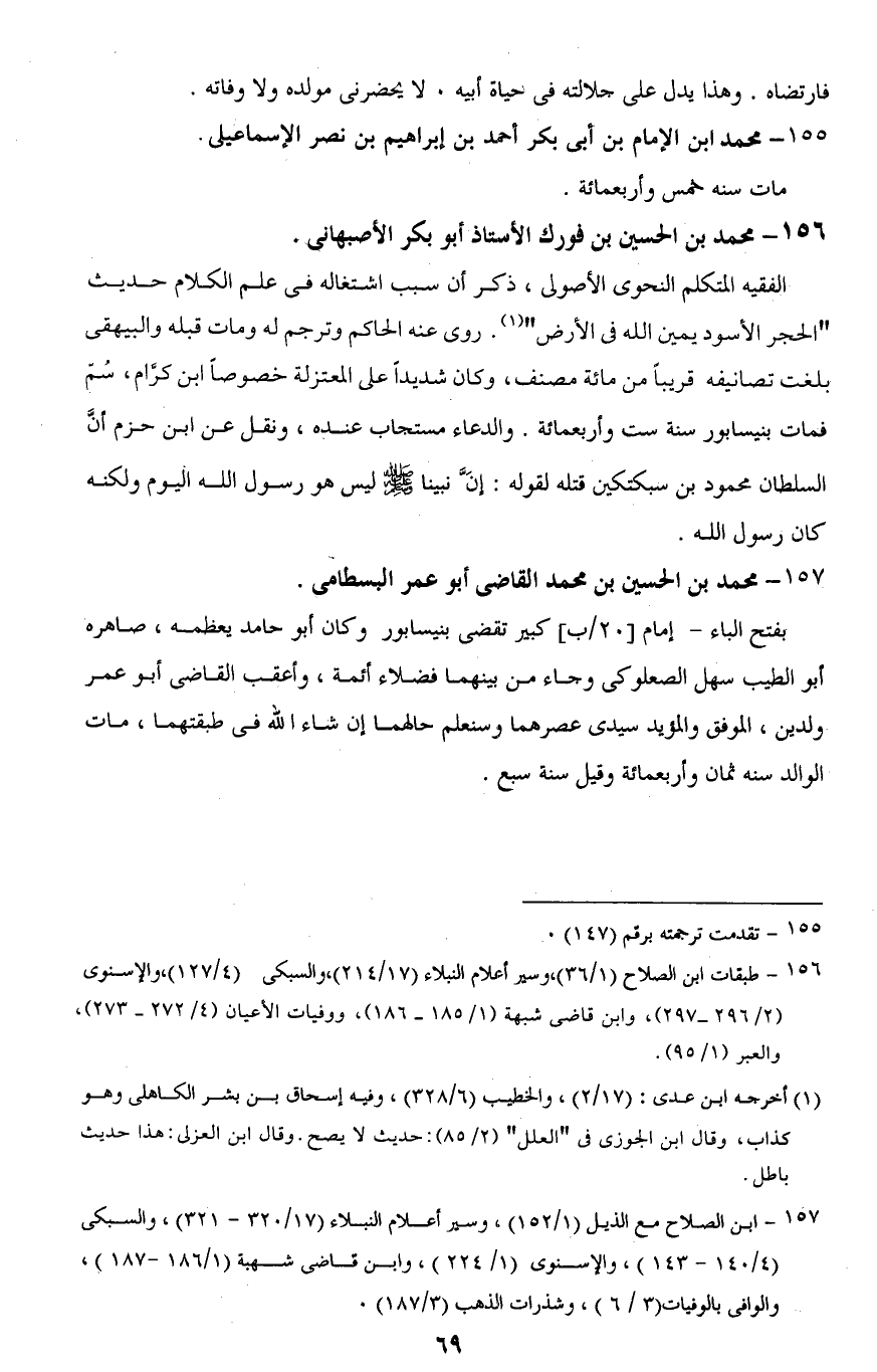 156 - محمد بن الحسين بن فورك الأستاذ أبو بكر الأصبهانى.