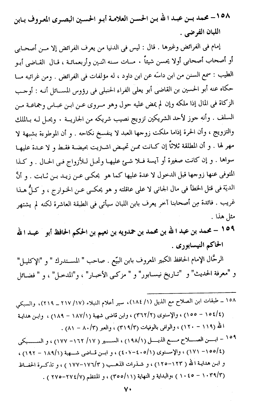 158 - محمد بن عبد اللَّه بن الحسن العلامة أبو الحسين البصرى المعروف بابن اللبان الفرضى.