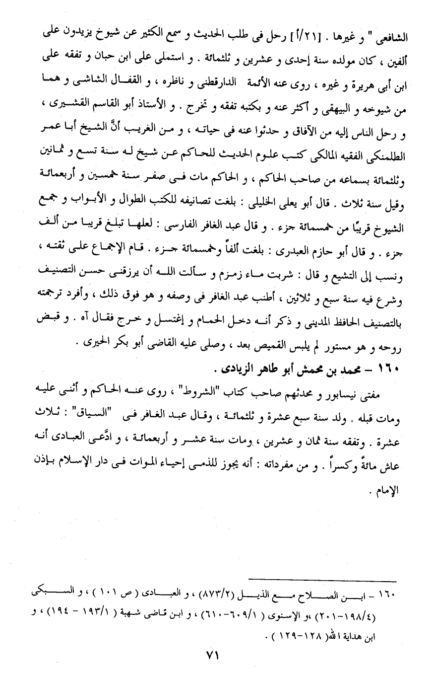 160 - ابن الصلاح مع الذيل (2/ 873)، والعبادى (ص 101)، والسبكى (4/ 198 - 201)، والإسنوى (1/ 609 - 610)، وابن قاضى شهبة (1/ 193 - 194)، وابن هداية اللَّه (128 - 129).