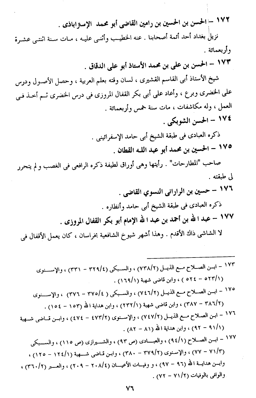 176 - ابن الصلاح مع الذيل (2/ 747)، والإسنوى (2/ 473 - 474)، وابن قاضى شهبة (1/ 91 - 92)، وابن هداية اللَّه (81 - 82).