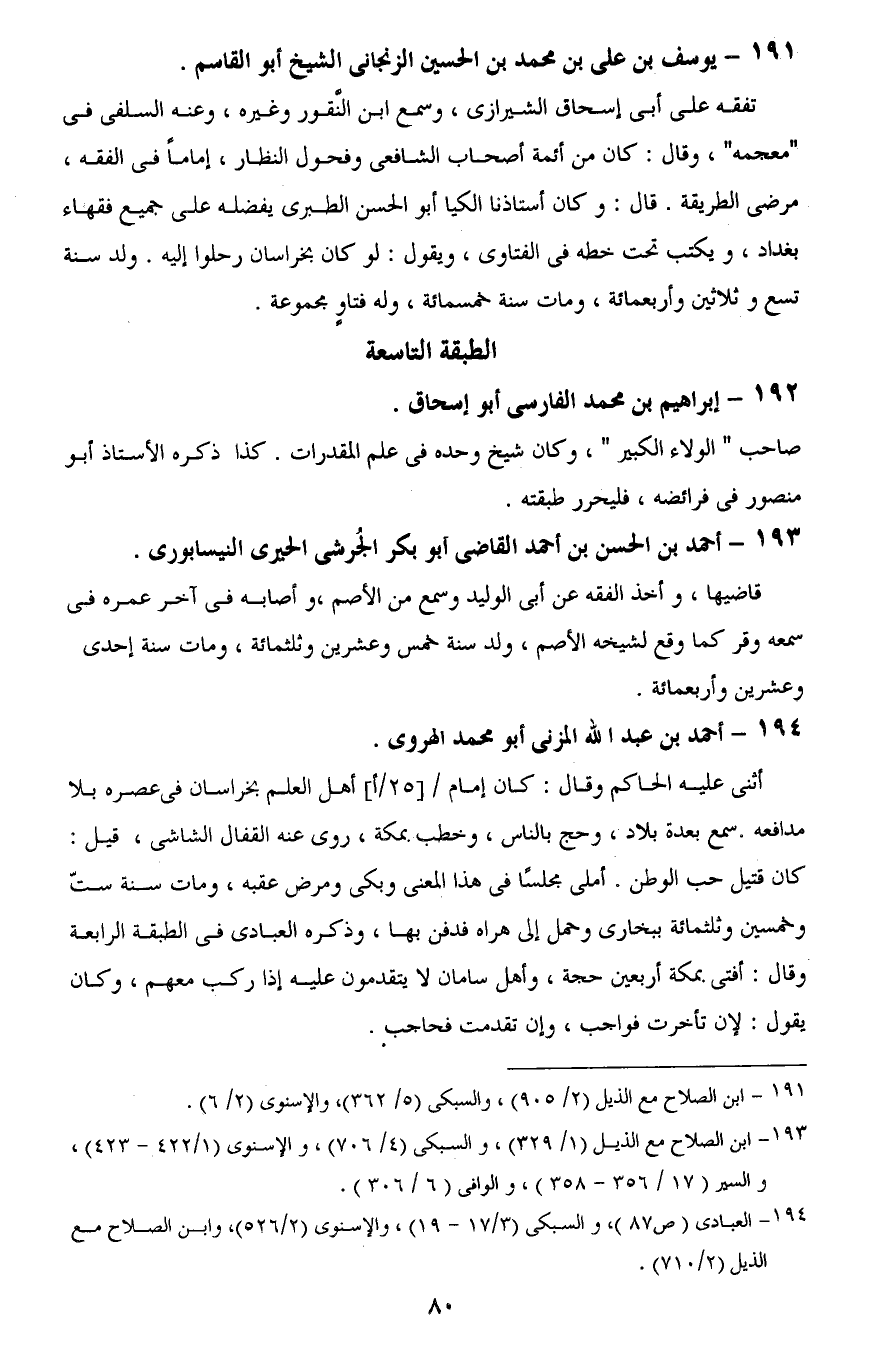 191 - ابن الصلاح مع الذيل (2/ 905)، والسبكى (5/ 362)، والإسنوى (2/ 6).
