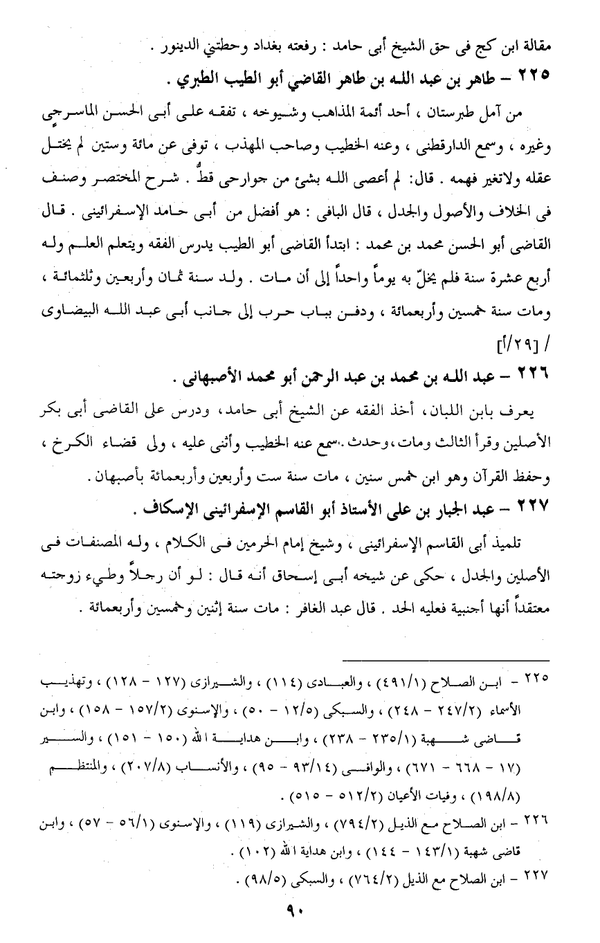226 - ابن الصلاح مع الذيل (2/ 794)، والشيرازى (119)، والإسنوى (1/ 56 - 57)، وابن قاضى شهبة (1/ 143 - 144)، وابن هداية اللَّه (102).