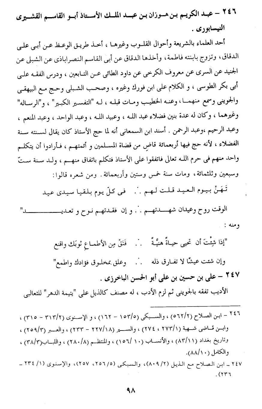 246 - عبد الكريم بن هوزان بن عبد الملك الأستاذ أبو القاسم القشيرى النيسابورى.