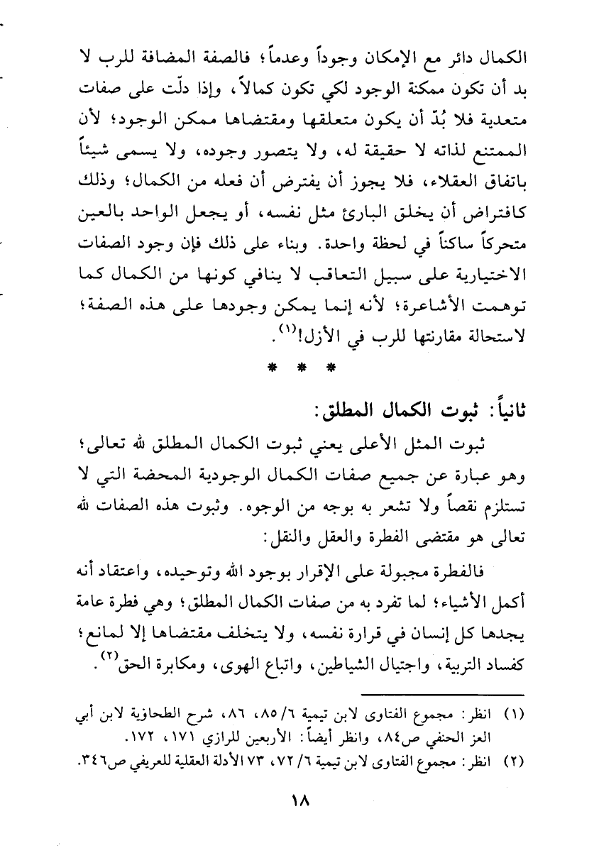 (¬1) انظر: مجموع الفتاوى لابن تيمية 6/ 85، 86، شرح الطحاوية لابن أبي العز الحنفي ص84، وانظر أيضا: الأربعين للرازي 171، 172.