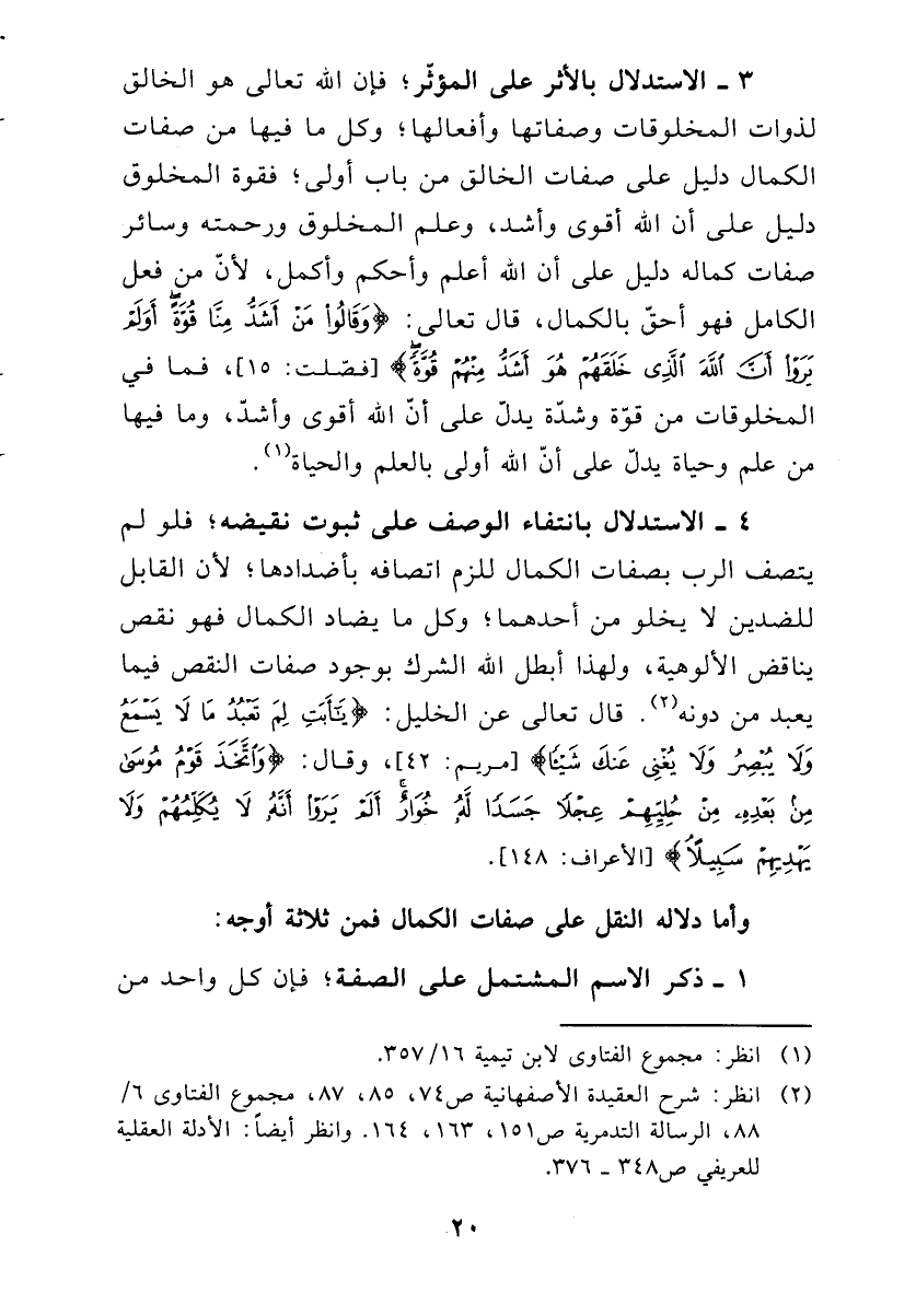 (¬2) انظر: شرح العقيدة الأصفهانية ص74، 85، 87، مجموع الفتاوى 6/ 88، الرسالة التدمرية ص151، 163، 164، وانظر أيضا: الأدلة العقلية للعريفي ص348 - 376.