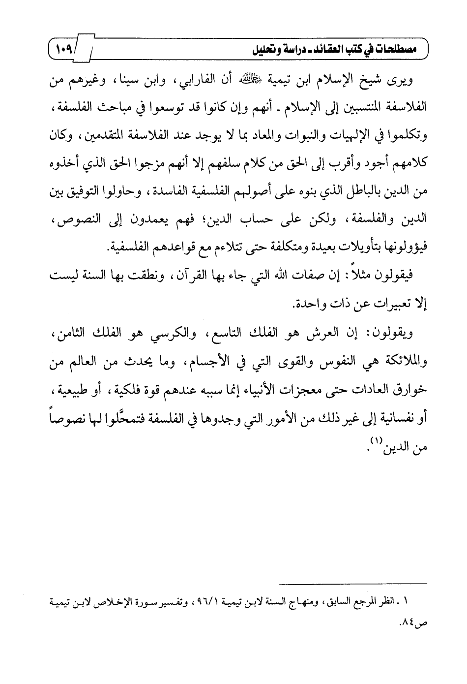 1 ـ انظر المرجع السابق، ومنهاج السنة لابن تيمية 1/96، وتفسير سورة الإخلاص لابن تيمية ص84.