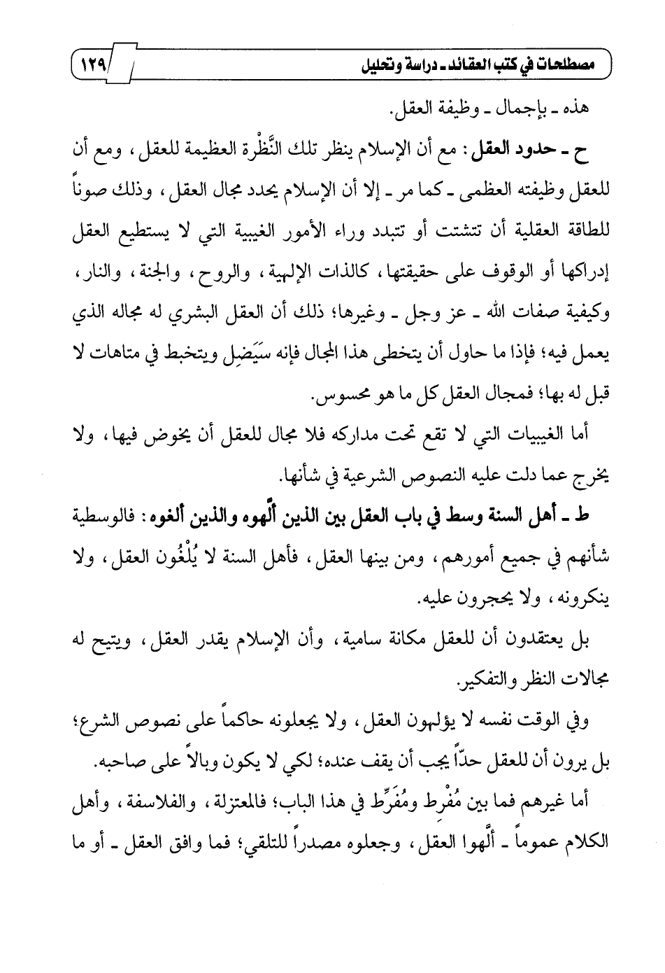 وفي الوقت نفسه لا يؤلهون العقل، ولا يجعلونه حاكماً على نصوص الشرع؛ بل يرون أن للعقل حدّاً يجب أن يقف عنده؛ لكي لا يكون وبالاً على صاحبه.