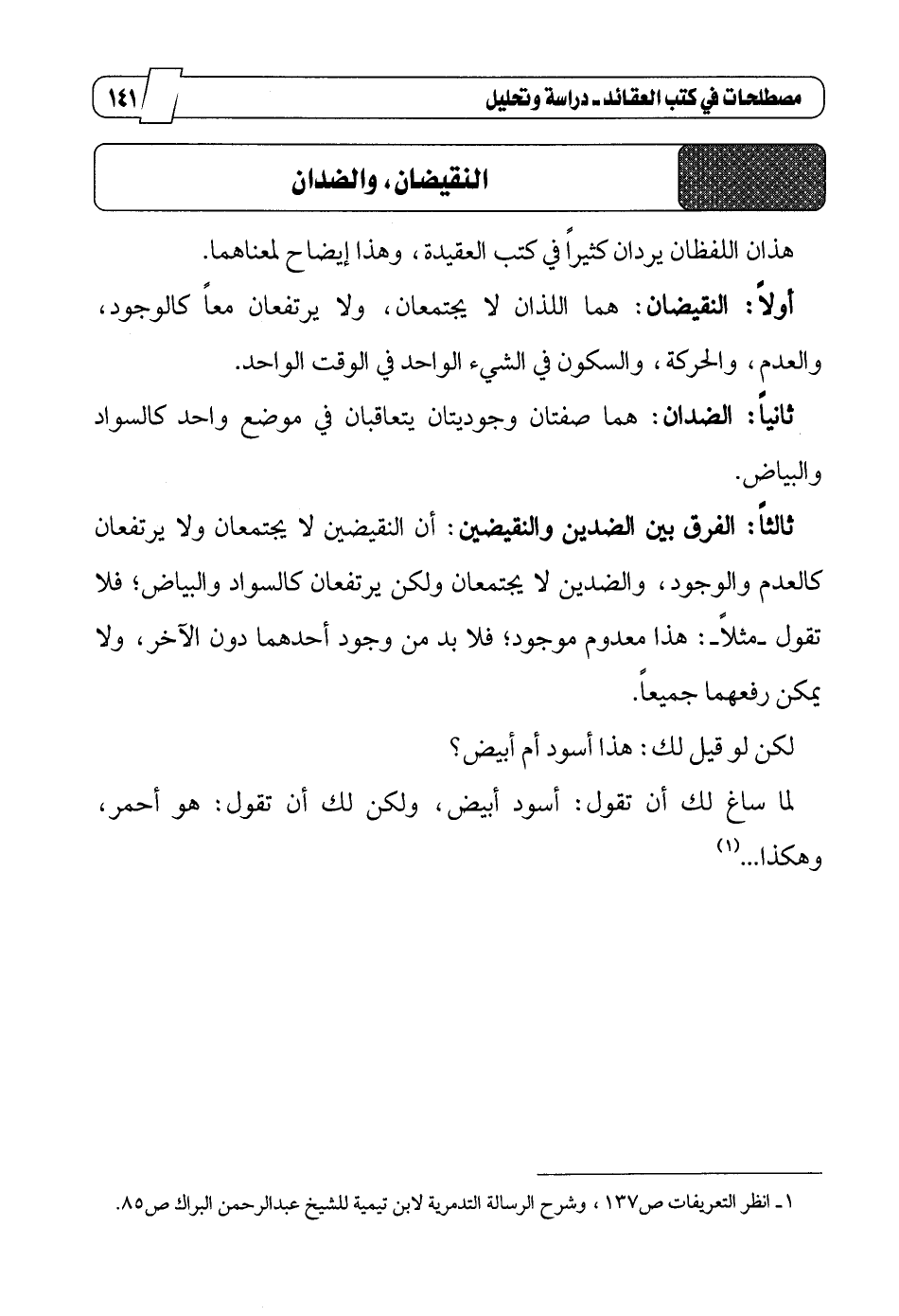 1_ انظر التعريفات ص137، وشرح الرسالة التدمرية لابن تيمية للشيخ عبد الرحمن البراك ص85.