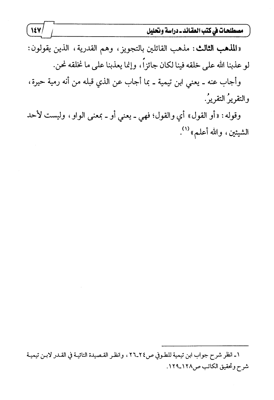 1_ انظر شرح جواب ابن تيمية للطوفي ص24_26، وانظر القصيدة التائية في القدر لابن تيمية شرح وتحقيق الكاتب ص128_129.