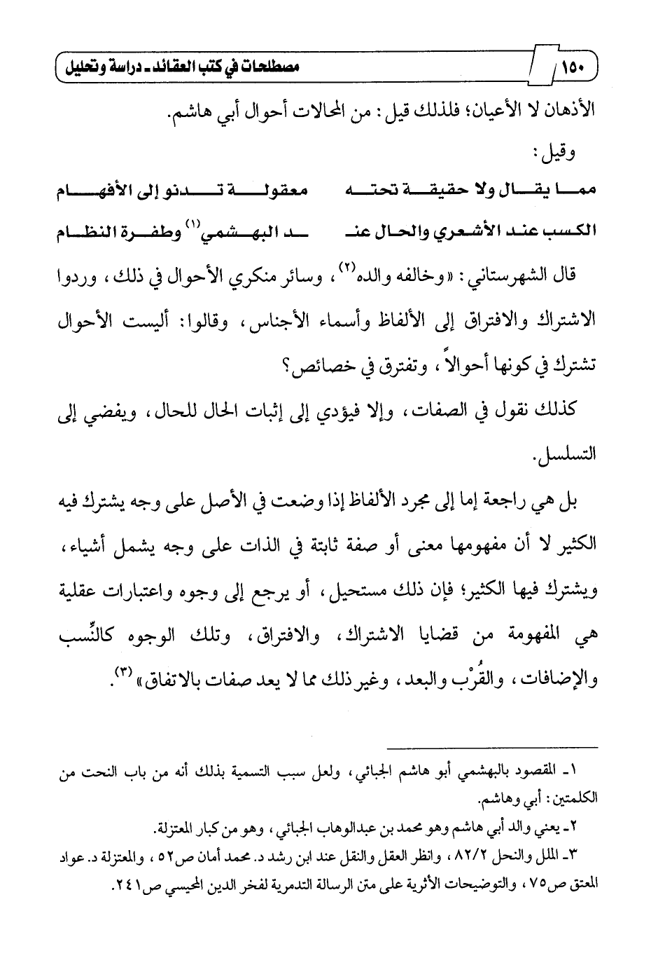 1_ المقصود بالبهشمي أبو هاشم الجبائي، ولعل سبب التسمية بذلك أنه من باب النحت من الكلمتين: أبي وهاشم.