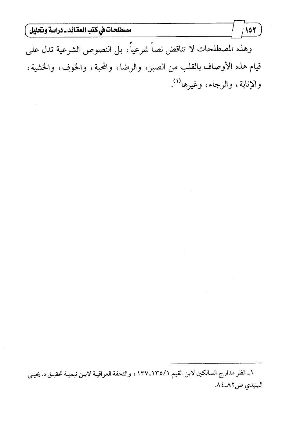 وهذه المصطلحات لا تناقض نصاً شرعياً، بل النصوص الشرعية تدل على قيام هذه الأوصاف بالقلب من الصبر، والرضا، والمحبة، والخوف، والخشية، والإنابة، والرجاء، وغيرها1.
