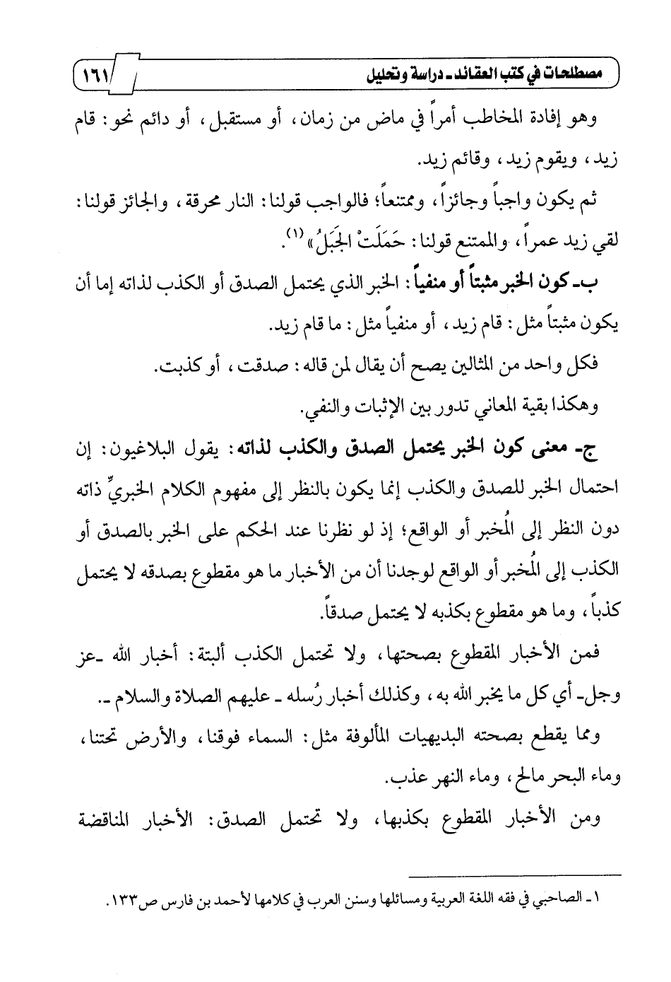 1_ الصاحبي في فقه اللغة العربية ومسائلها وسنن العرب في كلامها لأحمد بن فارس ص133.