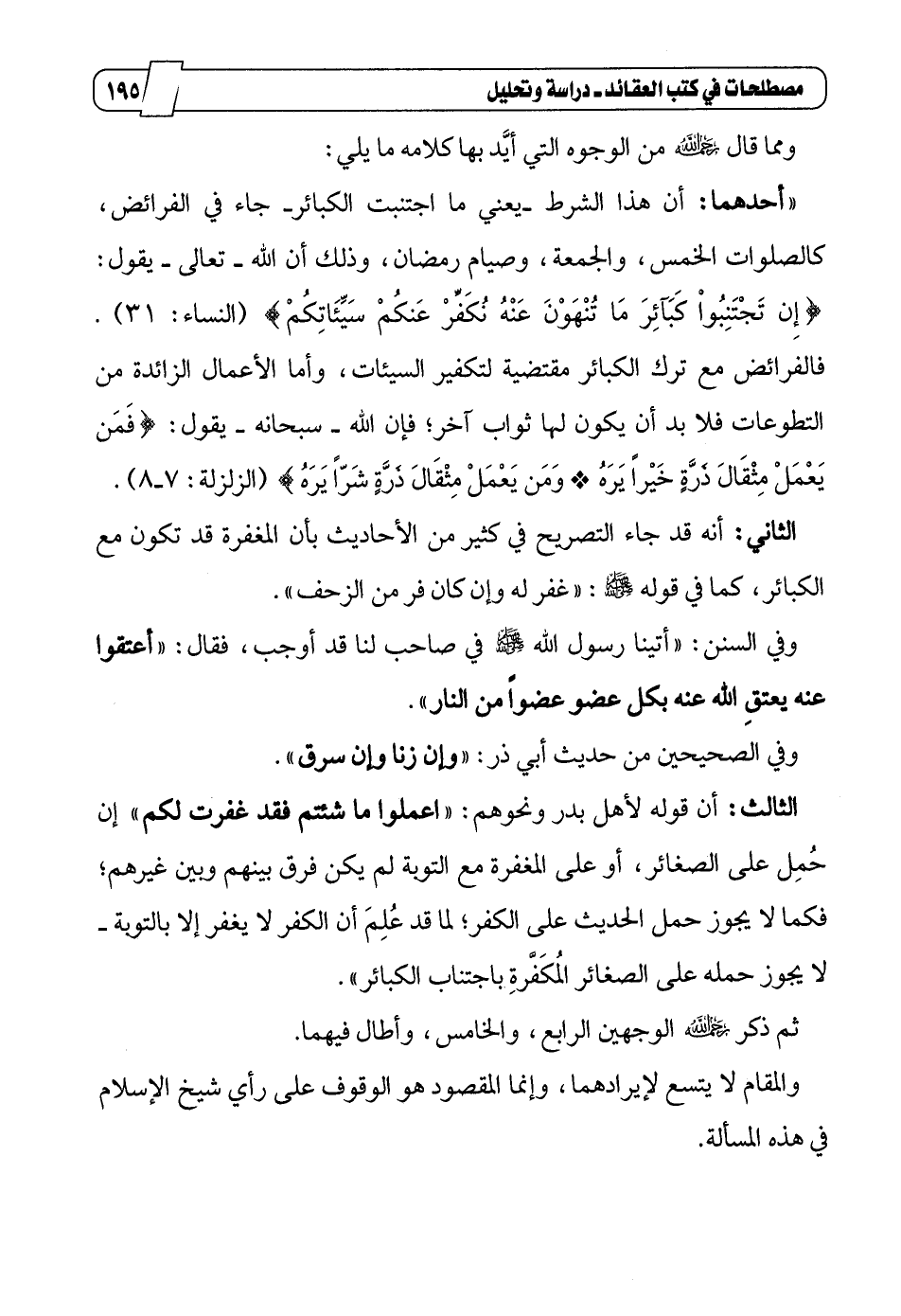 الثاني: أنه قد جاء التصريح في كثير من الأحاديث بأن المغفرة قد تكون مع الكبائر, كما في قوله ": "غفر له وإن كان فر من الزحف".
