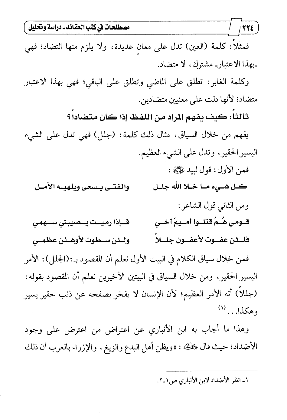 وهذا ما أجاب به ابن الأنباري عن اعتراض من اعترض على وجود الأضداد؛ حيث قال رحمه الله: "ويظن أهل البدع والزيغ، والإزراء بالعرب أن ذلك
