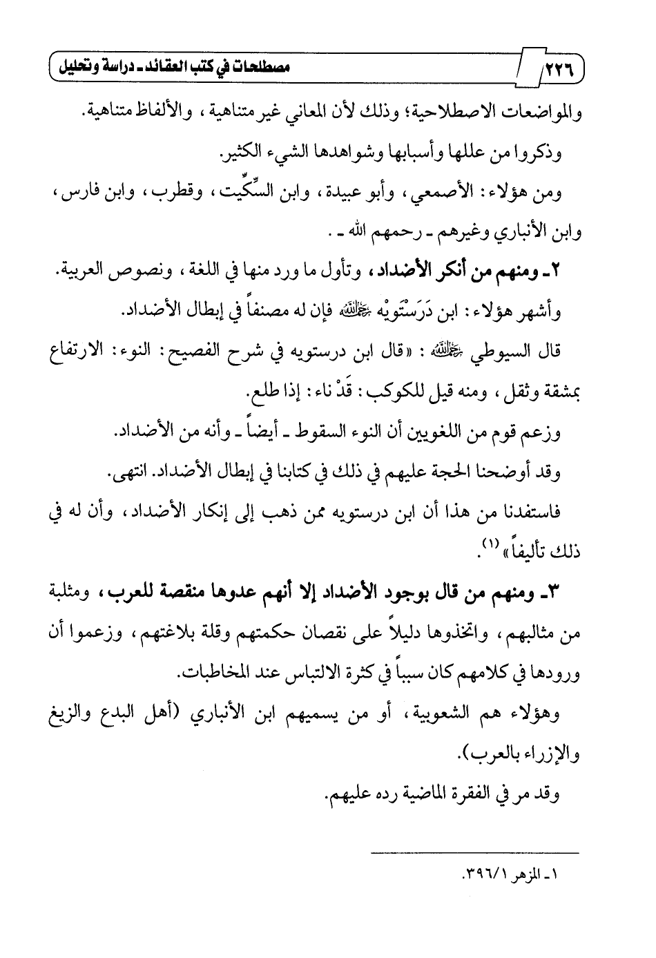 وأشهر هؤلاء: ابن دَرَسْتَويْه رحمه الله فإن له مصنفاً في إبطال الأضداد.
