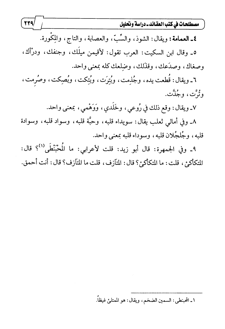 9_ وفي الجمهرة: قال أبو زيد: قلت لأعرابي: ما المُحْبَنْطَى1؟ قال: المتكأكئ، قلت: ما المتكأكئ؟ قال: المتآزف، قلت ما المتآزف؟ قال: أنت أحمق.