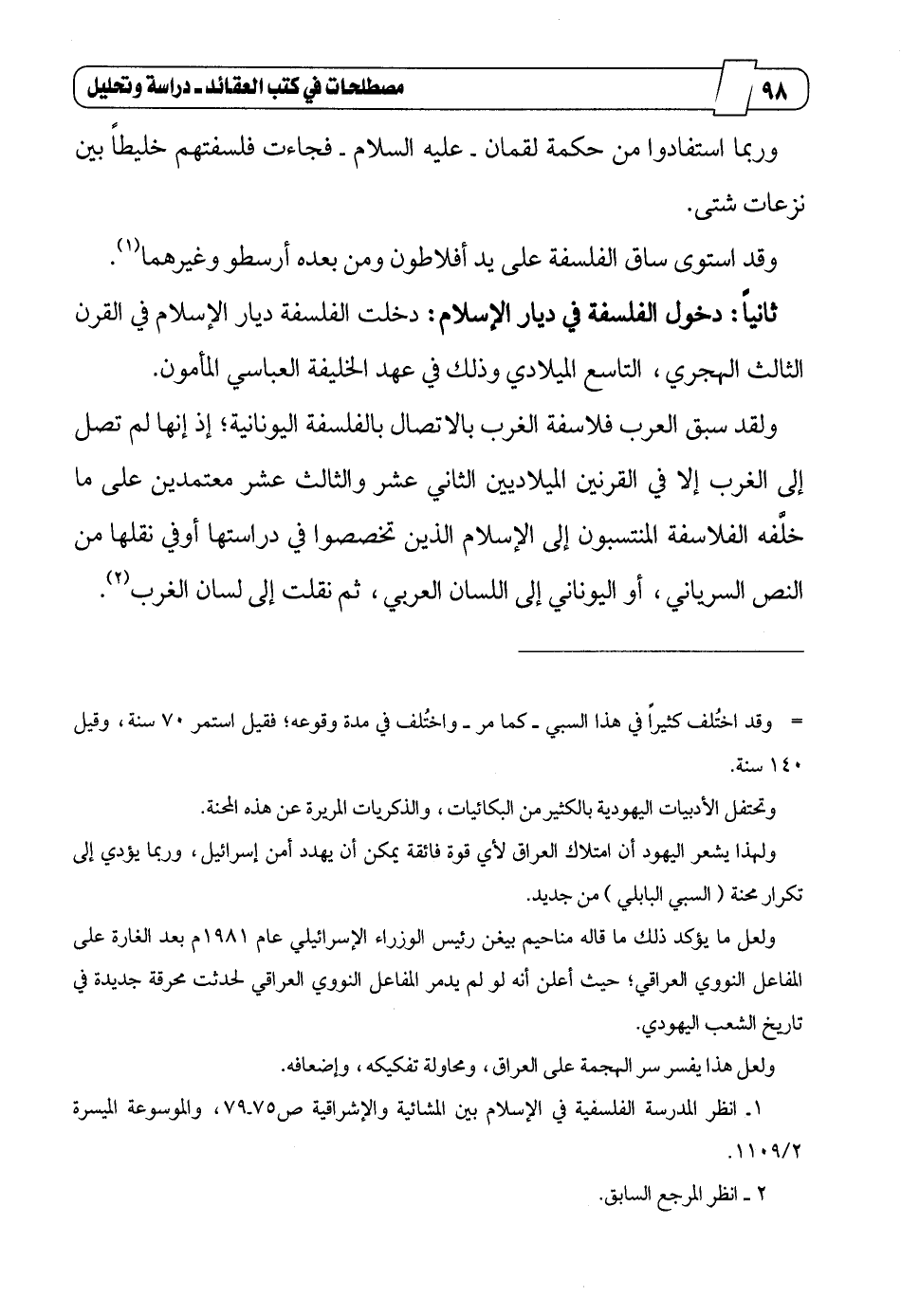 1 ـ انظر المدرسة الفلسفية في الإسلام بين المشائية والإشراقية ص75ـ79، والموسوعة الميسرة 2/1109.