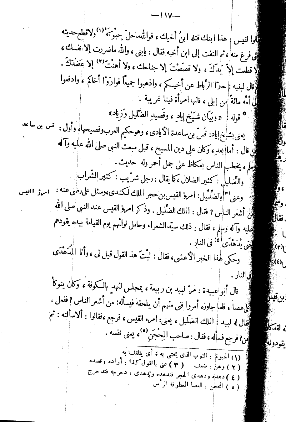 قوله: وبيان شيخ إياد، وقصيد الضليل وزياد.