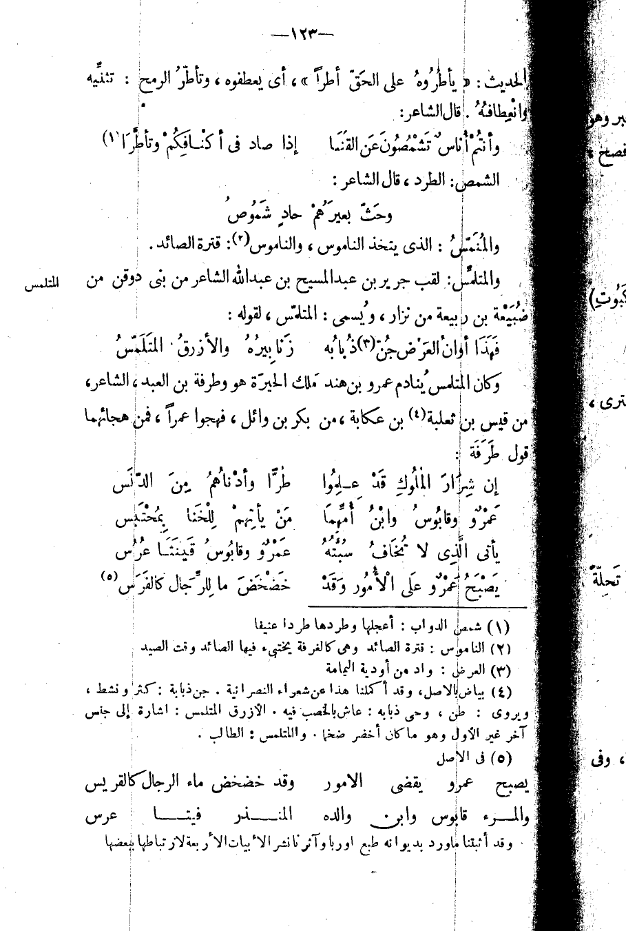 ونتم أناس تشمصون عن القنا ... إذا صاد في أكنافكم وتأطرا