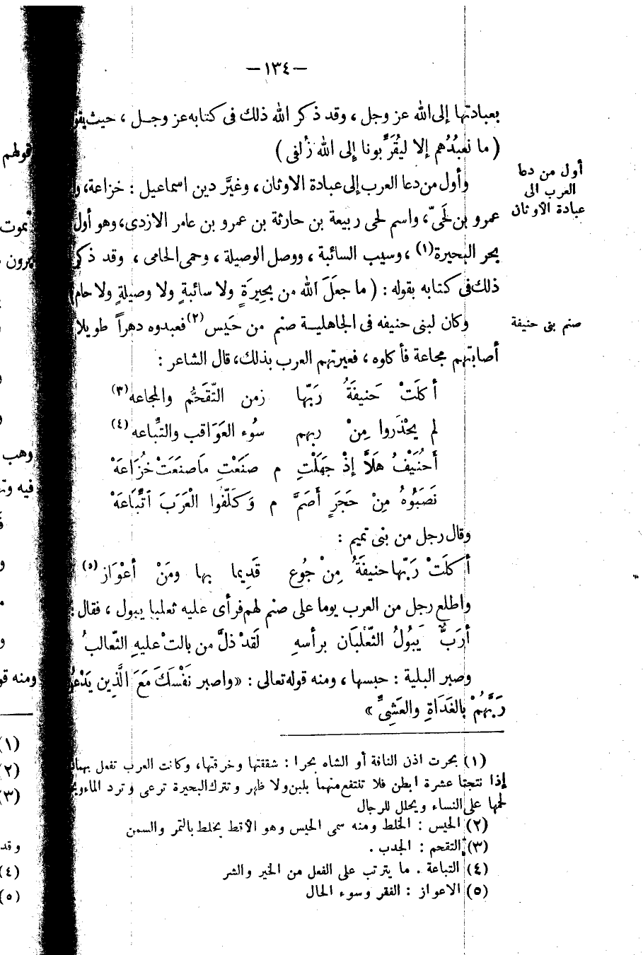 وأول من دعا العرب إلى عبادة الأوثان، وغير دين إسماعيل: خزاعة، واسمه عمرو بن لحلي، واسم لحي ربيعة بن حارثة بن عمرو بن عامر الأزدي، وهو أول من بحر البحيرة، وسيب السائبة، ووصل الوصيلة، وحمى الحامي، وقد ذكر الله ذلك في كتابه بقوله: (ما جعل الله من بحيرة ولا سائبة ولا وصيلة ولا حام) .