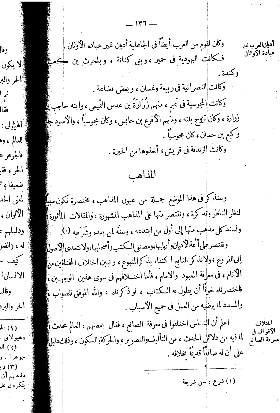 ونقتصر على أئمة الأديان وأربابها، ومصنفي الكتب وأصحابها، ولا نتعدى الأصول إلى الفروع، ولا نذكر التابع اكتفاء بذكر المتبوع، ونبين اختلاف المختلفين من الأنام، في معرفة المعبود والإمام، فما اختلافهم في سوى هذين الوجهين، فاختصرناه خوفاً أن يطول به الكتاب، لو ذكرناه، والله الموفق للصواب، والمسدد لما يرضيه من العمل في جميع الأسباب.