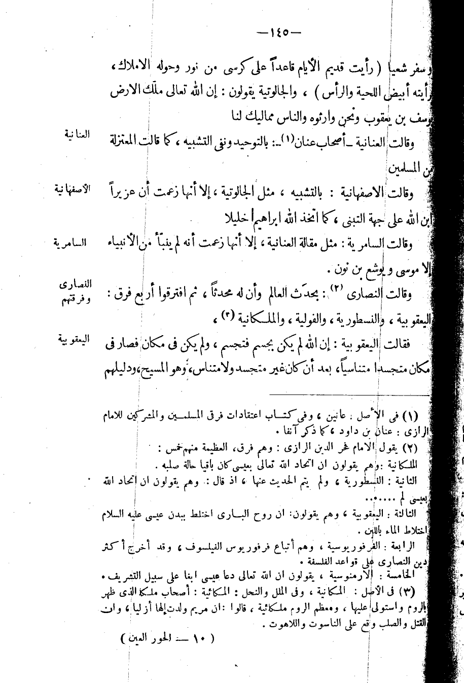 وقالت النصارى: بحدث العالم وأن له محدثاً، ثم افترقوا أربع فرق: اليعقوبية، والنسطورية، والفولية، والملكانية.