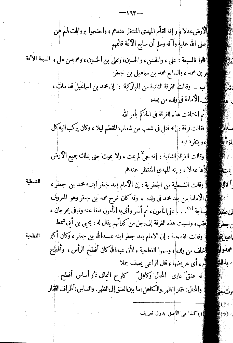 وقالت الفطحية: إن الإمام بعد جعفر ابنه عبد الله بن جعفر، وكان أكبر من خلف من ولده، وسموا الفطحية، لأن عبد الله كان أفطح الرأس، وأفطح القدم، أي عريضها، قال الراعي يصف جملاً: