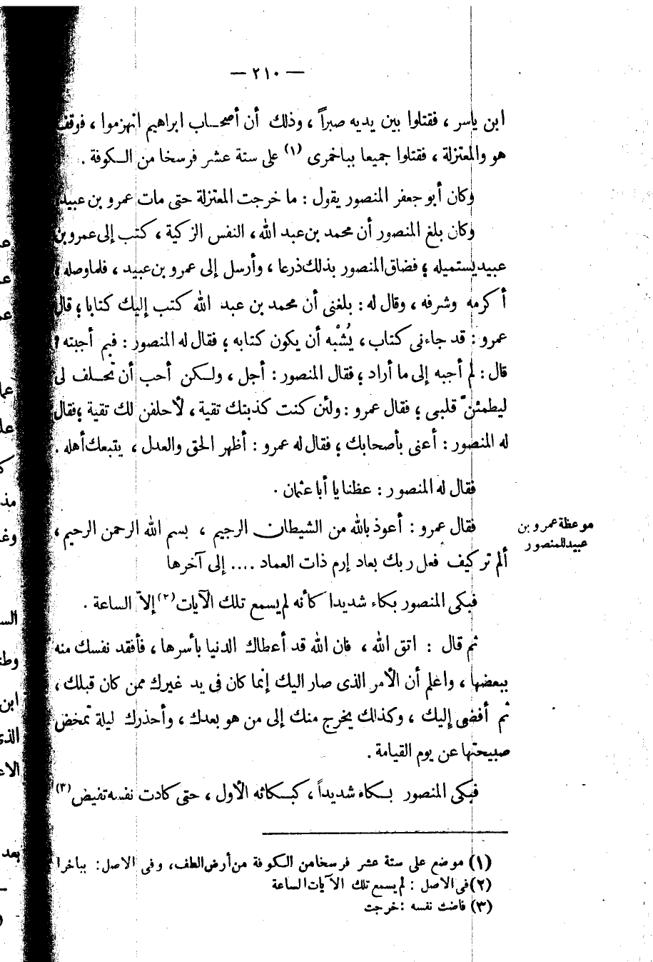 فبكى المنصور بكاء شديداً، كبكائه الأول، حتى كادت نفسه تفيض.